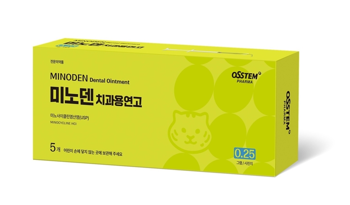 오스템 관계자는 “미노덴의 주성분 미노사이클린은 치주염 및 임플란트 주위염 원인균의 효과적인 정균이 가능한 성분으로 치료에 효과적”이라며 “신규 출시한 미노덴 0.25g은 치과의사의 입장을 고려해 사용량에 대한 부담을 낮춰 치주질환 진료가 적은 치과에서도 효율적으로 사용할 수 있을 것”이라고 밝혔다.
