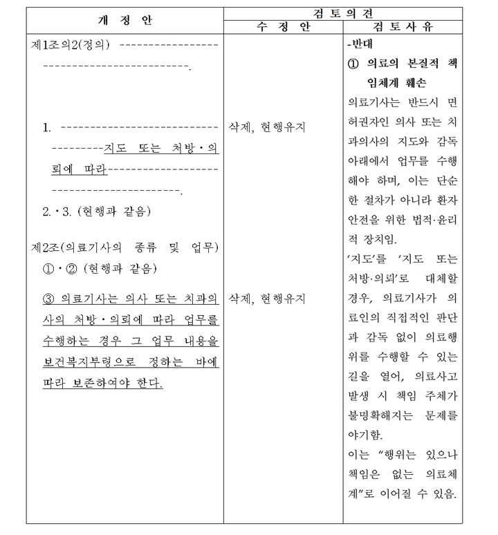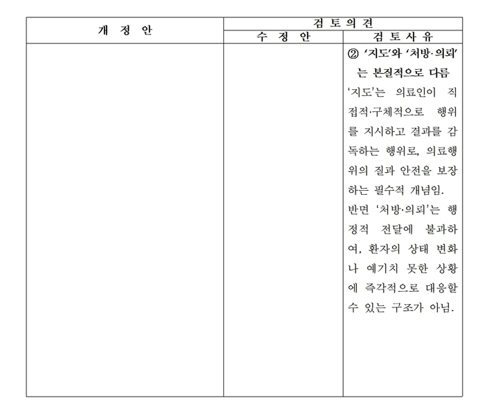 료행위의 질과 안전을 보장하는 필수적 개념인 반면 ‘처방·의뢰’는 행정적 전달에 불과해 환자의 상태 변화나 예기치 못한 상황에 즉각적으로 대응할 수 있는 구조가 아니다”라고 밝혔다.