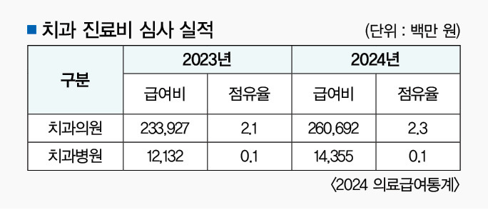 지난해 치과 의료급여 규모가 약 2750억 원으로 집계됐다. 이는 전년보다 증가한 기록이나, 전체 의료기관 중 최하위를 벗어나지 못했다.