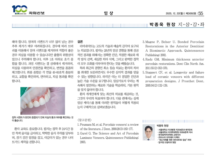 주소 : 서울시 성동구 광나루로 257(송정동) 대한치과의사협회 회관 3층 | 등록번호 : 서울, 아52234 | 등록일자 : 2019.03.25 | 발행인 직무대행 마경화 | 편집인 이석초 대표전화 : 02-2024-9200 | FAX : 02-468-4653 | 편집국 02-2024-9210 | 광고관리국 02-2024-9290 | Copyright © 치의신보. All rights reserved.