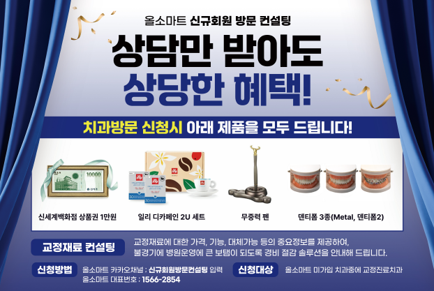 컨설팅을 신청한 모든 신규 가입 치과에는 ▲신세계 상품권(1만 원) ▲일리 커피세트 ▲무중력 펜 ▲덴티폼 3종 ▲올소마트 베스트상품 샘플박스 등 웰컴 패키지를 증정한다.