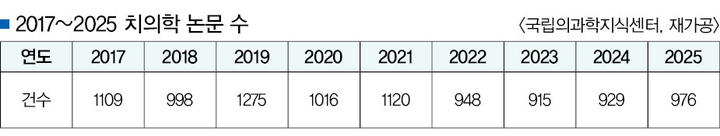 국립의과학지식센터는 최근 국내 발표된 치의학 논문 현황을 공개했다. 이에 따르면 지난 2017년부터 2025년까지 발표된 치의학 관련 논문은 9286건으로 나타났다. 이는 매해 평균 1031건의 논문이 쏟아졌다는 뜻이다. 이를 단순 계산해 보면 매일 2.8건 이상의 논문이 발표되고 있는 셈이다.