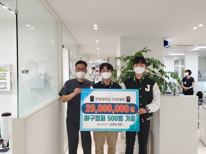 김영삼 원장(강남 레옹치과의원·치협 공보이사)이 모교 전북치대 후배들에게 2000만원 상당의 야구점퍼 500벌을 최근 기증했다.