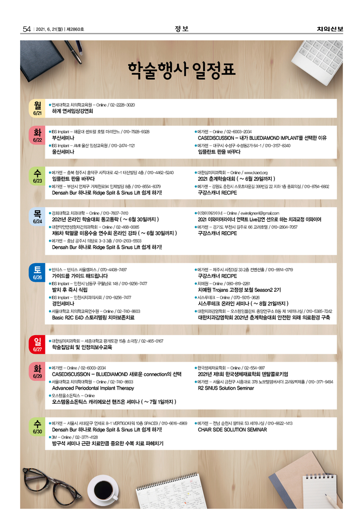 ■ 2021년 6월 21일 이후 세미나 일정입니다.