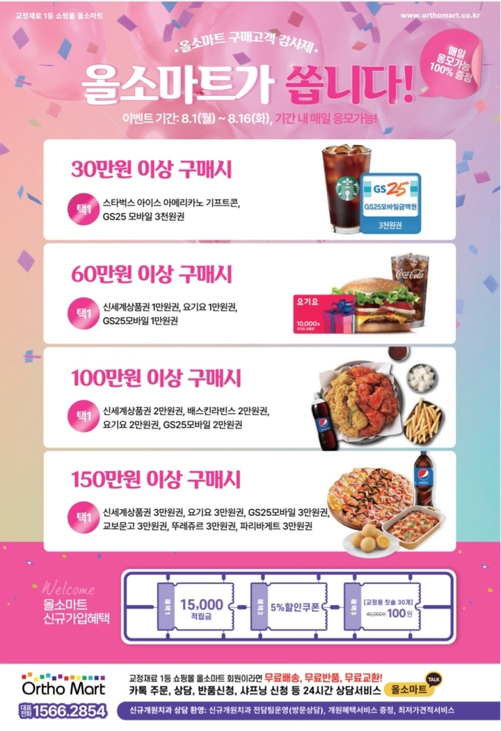 치과재료 쇼핑몰 올소마트가 고객 감사제를 8월 중순까지 진행한다.