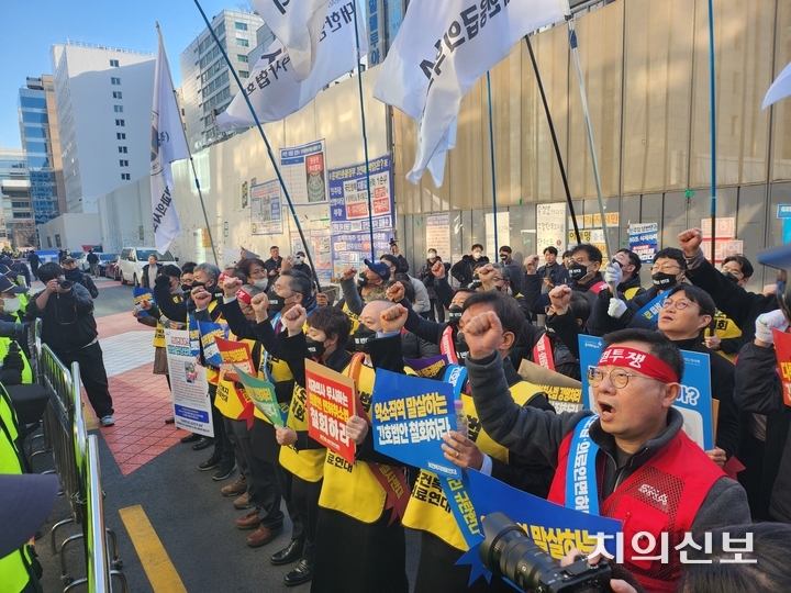 간호법·의료인 면허 취소 확대법 국회 통과를 저지하기 위해 치협을 비롯한 보건의료계가 여의도에 총 결집했다.