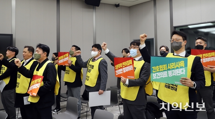 이에 우리 13개단체 보건복지의료연대는 간호법과 면허박탈법의 국회 본회의 표결이 임박한 이 시점, 오늘 각 단체의 임원들을 긴급 소집한 확대 연석회의를 통해 다음과 같이 결의한다.