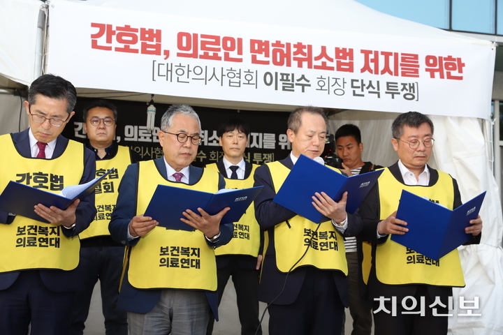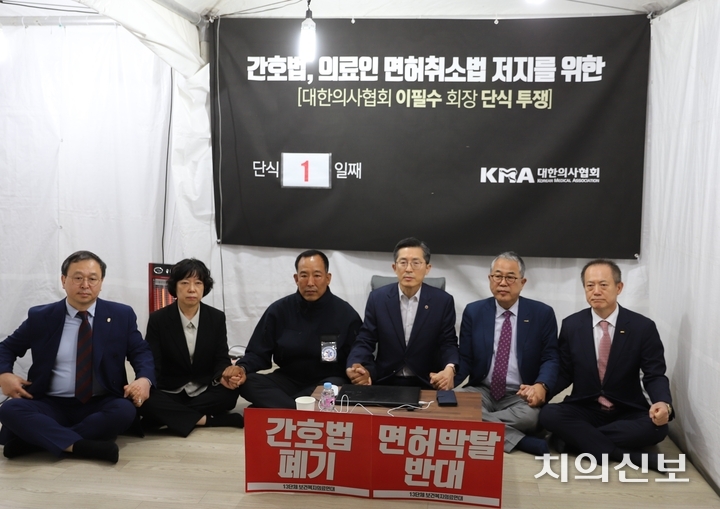 이와 관련 이필수 의협 회장은 “보건복지의료계의 정당한 목소리를 외면한 의료 악법이 국회에서 의결되는 최악의 상황을 맞았지만, 대한의사협회는 보건의료 생태계의 건강성을 지켜내고, 국민건강을 수호하기 위해 결코 포기하지 않을 것”이라며 이날부터 무기한 단식투쟁에 돌입하겠다고 선언했다.