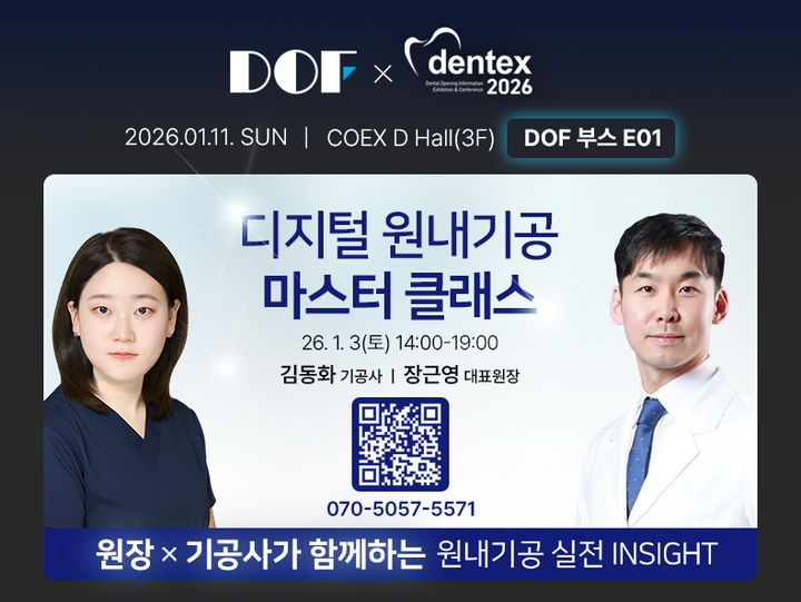 아울러 디오에프는 오는 1월 3일 성수동 DOF 세미나실에서 '디지털 원내기공 마스터 클래스'를 개최한다. 세미나에서는 원내 기공실 장비 활용법, 실제 운영 프로세스, 원장과 기공사 간 커뮤니케이션, 증례별 워크플로우 등 실전 노하우를 집중적으로 다룰 예정이다.