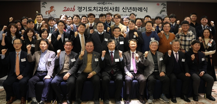 이어 김진경 경기도의회 의장이 영상축사로 병오년 새해 인사를 전했으며, 신년 떡 케이크 커팅식과 나승목 의장의 건배 제의, 만찬으로 이날의 신년하례식이 마무리됐다.