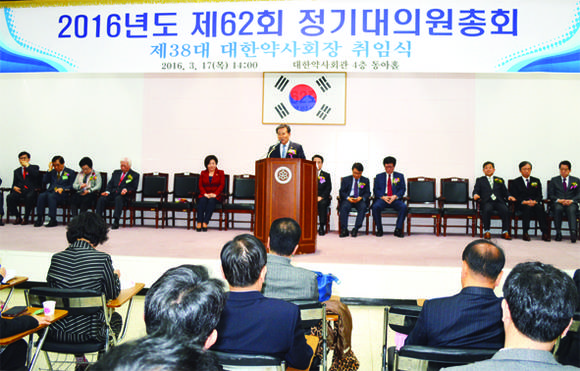 대한약사회는 이날 정기대의원총회에 앞서 재선에 성공한 제38대 조찬휘 회장 취임식을 거행했다.
