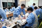 아름덴티스트리가 핸즈온 세미나 ‘Mission it possible, Sinus lift 될 때까지 한다!’를 지난 9월 27일 서울 서초구에서 개최했다. 이번 세미나는 창동욱 원장(윈치과)이 메인 연자로, 최상훈 원장(의정부 페리오치과), 문정헌 교수(단국대 치주과), 안상호 원장(안동센트럴치과)이 패컬티로 참여해 자리를 빛냈다. 강의는 이론을 최소화하고 실습을 강화한 구성으로 진행됐다. 실습에 앞서 상악동 수술에 필요한 핵심 이론을 짚으며, 상악동 거상술의 이해와 수술 중 발생할 수 있는 합병증 및 대처법에 대한 임상 노하우를 공유했다. 실습에서는 덴티폼과 돼지턱뼈(pig jaw)을 이용해 상악동 측방 접근법과 수직 접근법을 직접 체험했다. 창동욱 원장은 다양한 테크닉을 시연하며, 수강생들이 실제 술식을 익힐 수 있도록 패컬티와 함께 밀착 지도를 이어갔다. 특히 아름덴티스트리의 상악동 거상 전용 ‘SES KIT’를 활용한 S.E.S 테크닉과 그라인드 아웃 테크닉은 임상에서 안전하고 간편한 방법으로 수강생들의 호평을 받았다. 아름덴티스트리의 SES KIT는 하나의 키트로 crestal과 lateral 술식 모두를 지원해 활용도가 높다. 또한 crestal