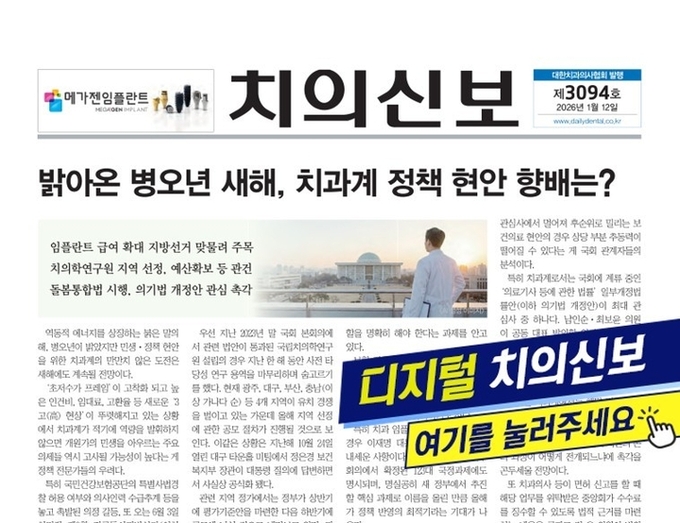주소 : 서울시 성동구 광나루로 257(송정동) 대한치과의사협회 회관 3층 | 등록번호 : 서울, 아52234 | 등록일자 : 2019.03.25 | 발행인 직무대행 마경화 | 편집인 이석초 대표전화 : 02-2024-9200 | FAX : 02-468-4653 | 편집국 02-2024-9210 | 광고관리국 02-2024-9290 | Copyright © 치의신보. All rights reserved.