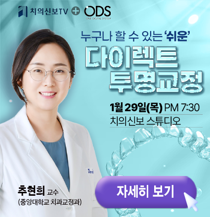주소 : 서울시 성동구 광나루로 257(송정동) 대한치과의사협회 회관 3층 | 등록번호 : 서울, 아52234 | 등록일자 : 2019.03.25 | 발행인 직무대행 마경화 | 편집인 이석초 대표전화 : 02-2024-9200 | FAX : 02-468-4653 | 편집국 02-2024-9210 | 광고관리국 02-2024-9290 | Copyright © 치의신보. All rights reserved.