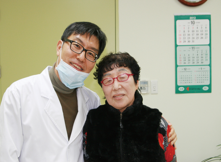 오동찬 의료부장과 환자. 티 없는 미소가 보는 이를 흐뭇하게 만든다.