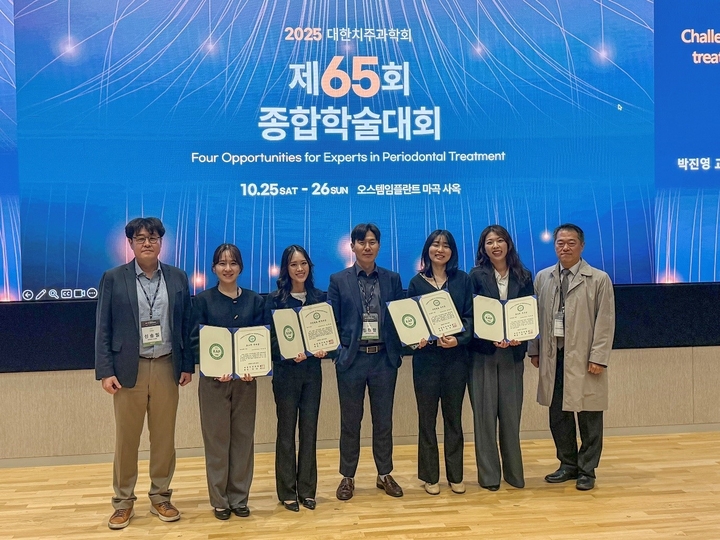 경희대치과병원 치주과 소속 3년 차 전공의 4명이 지난 10월 25~26일 오스템임플란트 마곡사옥에서 개최된 ‘2025 대한치주과학회 제65회 종합학술대회’에서 임상 연구와 임상 증례를 선보여 수상과 함께 큰 주목을 받았다.