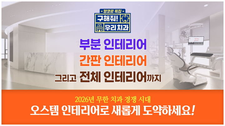 오스템 라이브쇼는 오는 18일부터 21일까지 치과 경쟁력을 높일 수 있는 ‘부분&간판 인테리어 앙코르 특집’ 방송을 진행한다고 밝혔다. 인테리어 공사에 따른 시간 및 진료 공백은 줄이면서도 가격은 합리적으로 구성해 치과 분위기를 긍정적으로 바꿔줄 수 있는 기획이다.