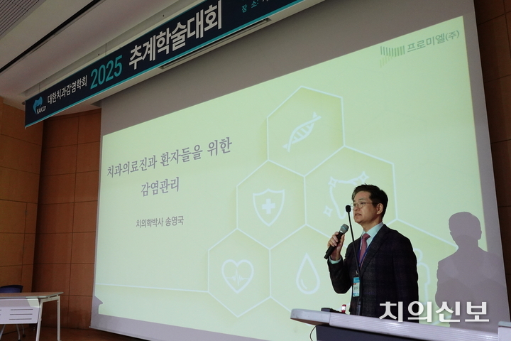대한치과감염학회(이하 감염학회)는 지난 6일 서울대학교 치과병원 승산강의실에서 2025 추계학술대회를 개최했다. 이번 학술대회에서는 치과 내 감염관리뿐 아니라 임플란트 주위염, 난치성 골재생 전략 등 다채로운 강의를 펼쳐 회원의 호응을 받았다.