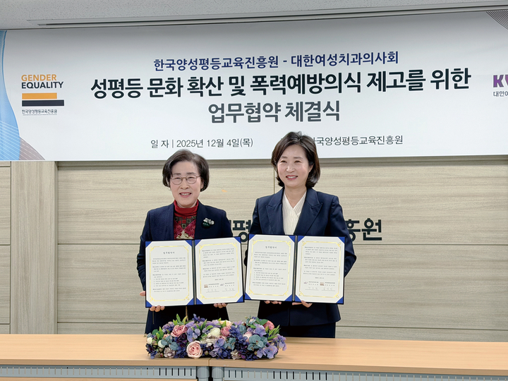 협약 내용은 ▲성 인지력 향상을 위한 교육 및 교류 협력 ▲여성 인재 발굴 및 대표성 제고를 위한 협력 ▲성평등 및 폭력 예방 의식 확산을 위한 홍보 협력 ▲기타 상호 업무지원 및 우호 증진에 관한 사항 등이다.