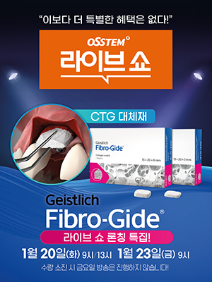 오스템 라이브쇼는 오는 20일과 23일 연조직 대체재 Fibro-Gide(파이브로가이드) 론칭 특집 방송을 진행한다.