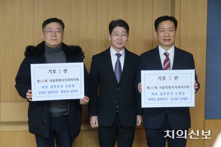 기호 1번 신동열 회장 후보는 송파구회 총무이사와 회장, SIDEX 조직위원장 등을 거쳐 현재 서울지부 부회장으로 재임 중이며, 함동선 부회장과 심동욱 홍보이사가 부회장 후보로 함께 한다.