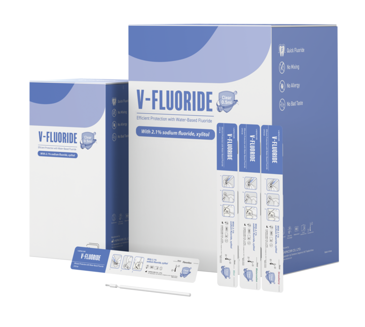 사용자 편의성을 극대화한 ‘No-Mix, No-Dry’시스템도 눈길을 끈다. V-FLUORIDE는 별도의 혼합 과정 없이 즉시 사용할 수 있으며, 치아 세척 후 진료 부위에 격리와 건조 과정 없이 불필요한 수분만 제거하면 바로 적용이 가능하다.
