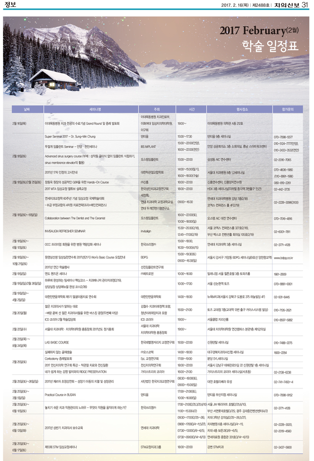 ■ 2017년 2월 16일 이후 세미나 일정입니다
