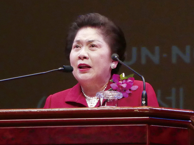 김수연 여성연합 한국회장은 “문훈숙 세계회장과 하나되어 어머니의 사랑으로 한국과 세계의 등불이 되겠다”며 취임소감을 밝혔다.
