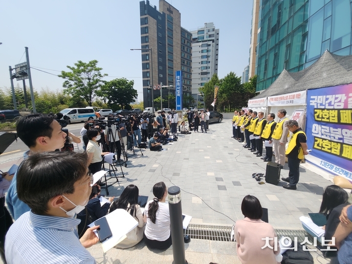 치협을 비롯한 13개 단체가 참여하는 보건복지의료연대가 간호법에 대한 대통령 거부권 행사에 대해 환영하는 한편 거부권이 적용되지 않은 의료인 면허취소법에 대해서는 신속 재검토를 촉구했다.