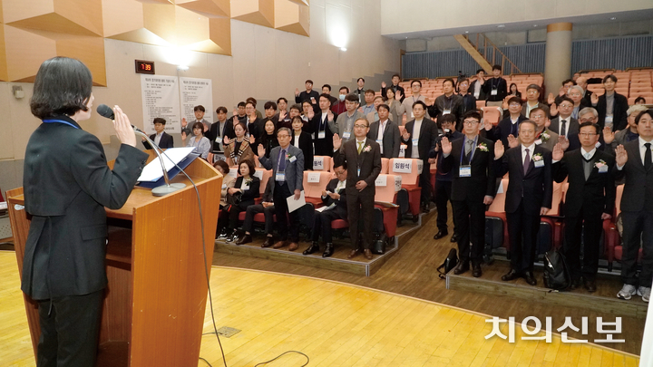 대전지부 제32차 정기대의원총회가 지난 21일 원광대 대전치과병원 대강당에서 진행됐다. 재적 대의원 65명 중 48명이 참석해 성원된 이날 지부 총회에서는 2024년 회계연도 회무·결산보고와 감사보고, 2025회계년도 사업계획과 예산 등을 심의 및 의결했다.
