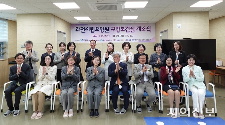 과천시립요양원 구강보건실 개소식이 지난 6일 열렸다. 행사는 과천시립요양원이 주최하고 과천시 보건소, 대한치매구강건강협회(이하 치구협), 연세대학교 치과대학 동문회의 후원으로 마련됐으며, 신계용 과천시장을 비롯해 지자체, 복지기관, 보건, 치과계 관계자 50여 명이 참석한 가운데 진행됐다.