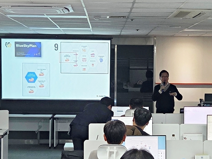 8일 ‘정확한 진단과 식립각도 설계’를 주제로 열린 세미나는 실제 환자 케이스를 활용한 임플란트 치료 계획 수립과 3D 프린팅을 이용한 가이드 디자인 등 실습 중심 프로그램으로 구성됐다. 참가자들은 6시간 동안 All on X 케이스의 가상 시뮬레이션부터 골삭제 가이드 및 드릴 가이드 디자인까지 체험하며 디지털 기반 임플란트 워크플로우의 실제 적용 과정을 익혔다.