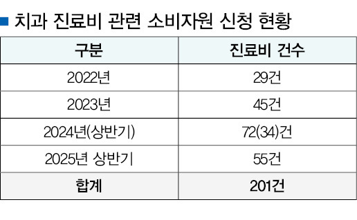 집계 현황에 따르면 치과 분쟁 관련 신청 건수는 총 635건으로 진료비 관련 분쟁은 201건, 부작용 관련 분쟁은 403건이었다. 이 중 특히 올해 상반기에 접수된 치과 진료비 관련 신청 건수로는 55건으로, 지난해 상반기 34건보다 61.8%가량 증가했다. 연도별로는 ▲2022년 29건 ▲2023년 45건 ▲2024년 72건 등이다.