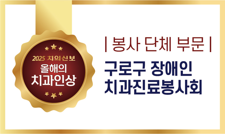 구로구 장애인 치과진료봉사회(이하 구로구봉사회)가 ‘2025 치의신보 올해의 치과인상’ 단체부문 수상자로 선정됐다. 구로구봉사회는 김용진 원장을 비롯해 이영훈 원장(이영훈치과), 김규석 원장(고려치과), 김길준 원장(시민치과), 김동근 원장(뉴욕비엔에스치과), 김수진 원장(뉴욕비엔에스치과), 김정우 원장(연세한결치과), 정득인 원장(해피치과), 임병섭 원장(이가온치과), 최진웅 원장(서울하우치과) 등 10명으로 구성돼 있다.
