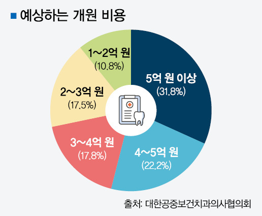 개원예정의 3명 중 1명은 초기 개원 비용을 ‘5억 원 이상’으로 예상하고 있는 것으로 나타나면서, 고물가·인건비 상승이 개원 진입 장벽을 빠르게 끌어올리고 있다는 현실이 확인됐다. 5년 전 ‘5억 원 이상’을 꼽은 개원예정의 비율 대비 5배가량 상승한 수치다.