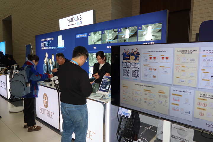 휴덴스바이오의 OCP(Octacalcium Phosphate) 골이식재 ‘Bontree+(본트리)’의 축적된 임상증례에 많은 개원의들이 집중했다. 이종골에 더해 활용하면 안정적이고 좋은 임상결과를 얻을 수 있다는 것이 주요 강의내용이었다.