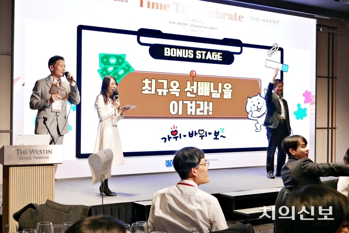 김형일(58회)·권영은(60회) 동문의 사회로 진행된 2부에서는 14회 대선배부터 80회 까마득한 후배들이 한 테이블에 앉아 초성 게임, 가위바위보, 음악 퀴즈 등을 함께 풀며 세대 차이를 잊었다.