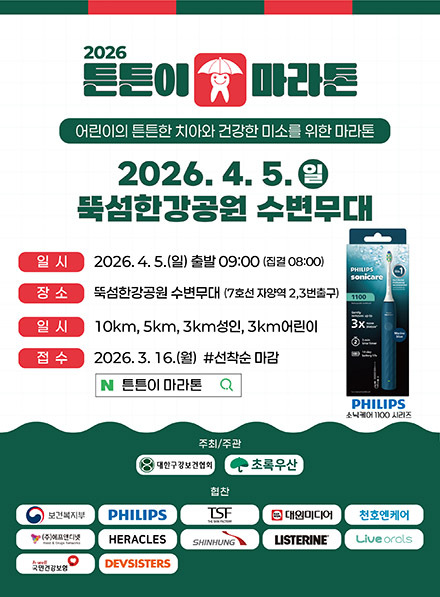 대한구강보건협회(이하 구보협)가 오는 4월 5일 서울 뚝섬한강공원 수변무대에서 ‘튼튼이 마라톤’을 개최하며 국민 구강 건강을 위한 힘찬 발걸음을 다시금 내닫는다.