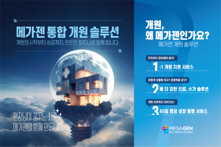 메가젠임플란트(이하 메가젠)가 치과 개원 준비부터 사후 관리까지 전 과정을 밀착 지원하는 ‘통합 개원 솔루션’을 선보이며 예비 개원의들 사이에서 큰 주목을 받고 있다.
