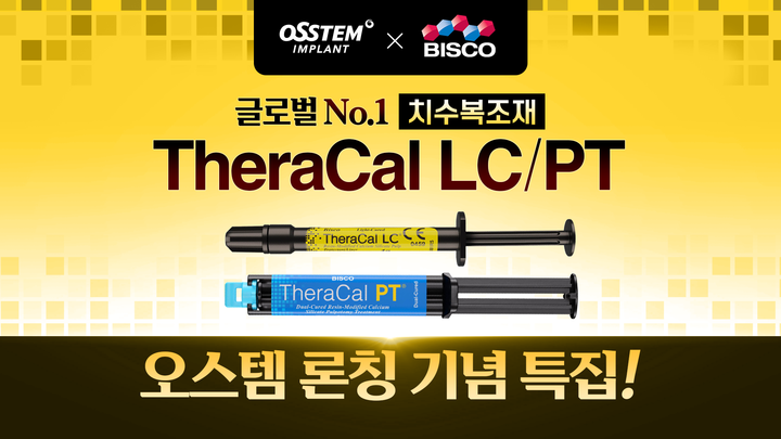 OSSTEM 라이브쇼는 오는 31일부터 4월 3일까지 글로벌 덴탈 소재 기업 BISCO사의 대표 치수복조재 ‘TheraCal LC’와 ‘TheraCal PT’를 론칭한다고 밝혔다. 최근 치수의 손상을 최소화하고 생존 가능성을 높이는 생활치수치료(Vital Pulp Therapy·이하 VPT)의 중요성이 강조되고 있으며, 치수를 보호하는 치수복조재에 대한 관심도 높아지고 있어 많은 고객이 몰릴 것으로 회사 측은 기대하고 있다..
