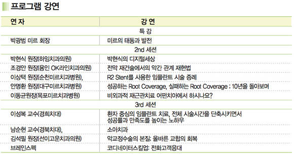 이어 3번째 세션에서는 이성복 교수(경희치대)의 ‘환자 중심의 임플란트 치료, 전체 시술시간을 단축시키면서 성공률과 만족도를 높이는 노하우’를 포함, 4개의 강연이 준비돼 있다<프로그램 강연 표 참조>.