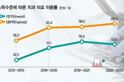 지난 10년간 우리나라 성인의 치과 이용률은 증가세를 보였으나 소득수준에 따라 여전히 뚜렷한 격차를 보여, 저소득층의 치과의료 접근성을 높이기 위한 정책 마련의 필요성을 대두시켰다. 최근 치협 치과의료정책연구원과 경희대 대학원 치의학과 예방사회치과학교실 연구팀이 국민건강영양조사 자료를 이용해 최근 10년간 우리나라 성인의 치과 이용률을 분석한 결과를 대한예방치과·구강보건학회 저널을 통해 발표했다. ‘최근 10년간 우리나라 성인의 치과의료 이용 추세와 결정 요인: 국민건강영양조사 분석’이라는 제하의 논문으로 실린 이번 연구는 국민건강영양조사 제6기(2013~2015)부터 제9기(2022~2023)까지의 자료를 활용해 인구사회학적 요인과 건강행태 요인에 따른 치과 이용 양상의 차이를 규명하고자 했다. 연구팀은 치과 이용 여부를 종속 변수로, 성별, 연령, 교육수준, 소득수준, 거주지역, 고혈압, 당뇨, 고위험음주율, 현재 흡연 여부, 하루 2회 이상 칫솔질 여부를 독립변수로 정의 후 연구를 진행했다. 그 결과 우리나라 성인의 치과 이용률은 2013~2015년 48.8%에서 2016~2018년 57.3%, 2019~2021년 59.2%, 2022~2023년 60.
