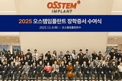 오스템임플란트(이하 오스템)가 치과계의 미래를 짊어질 동량들에게 격려하고 지원하는 뜻 깊은 자리를 마련했다. 오스템이 지난 6일 서울 강서구 오스템임플란트 트윈타워에서 ‘2025년 장학증서 수여식’을 진행했다. 이날 행사에는 전국 15개 치과대학 및 치의학전문대학원에서 선발된 167명의 오스템 장학생 가운데 100여 명이 직접 참석, 각 대학 학장 및 교수가 시상하는 장학증서를 받았다. 참석자들은 저녁 시간까지 이어진 만찬을 즐기며 서로의 값진 학업 성취를 축하했으며 앞으로도 학문에 정진해 좋은 치과의사가 될 것을 다짐했다. 이들은 국내 최초의 치과 분야 상설전시장인 ‘오스템임플란트 제품 전시관’을 함께 견학하기도 했다. 이날 수여식에 참석한 신예음 학생(조선치대 예과 1학년)은 “치대에 입학해보니 실습재료를 준비할 일이 많은데 이번 장학금이 큰 도움이 될 것 같다”며 “치대생이 되기 전부터 익히 알고 있었던 오스템으로부터 영광스러운 장학금을 받은 만큼 학업에 더욱 열중해 환자를 세심하게 돌볼 수 있는 멋진 치과의사가 되겠다”고 밝혔다. 오스템은 치과계와의 상생을 도모하고 국내 치의학 발전을 지원하는 취지에서 오랜 기간 장학 사업을 펼쳐왔다. 지난 2003년